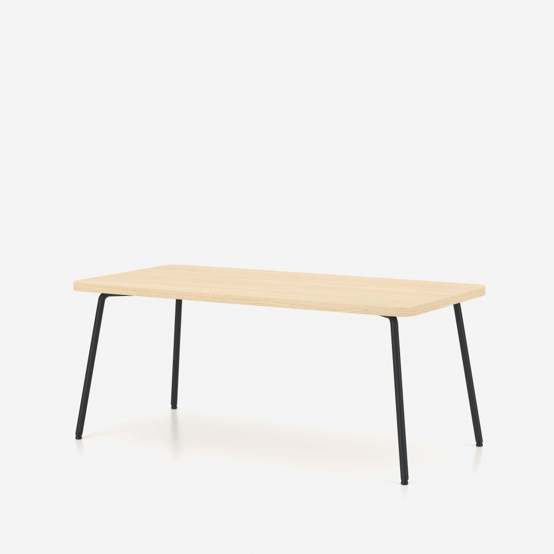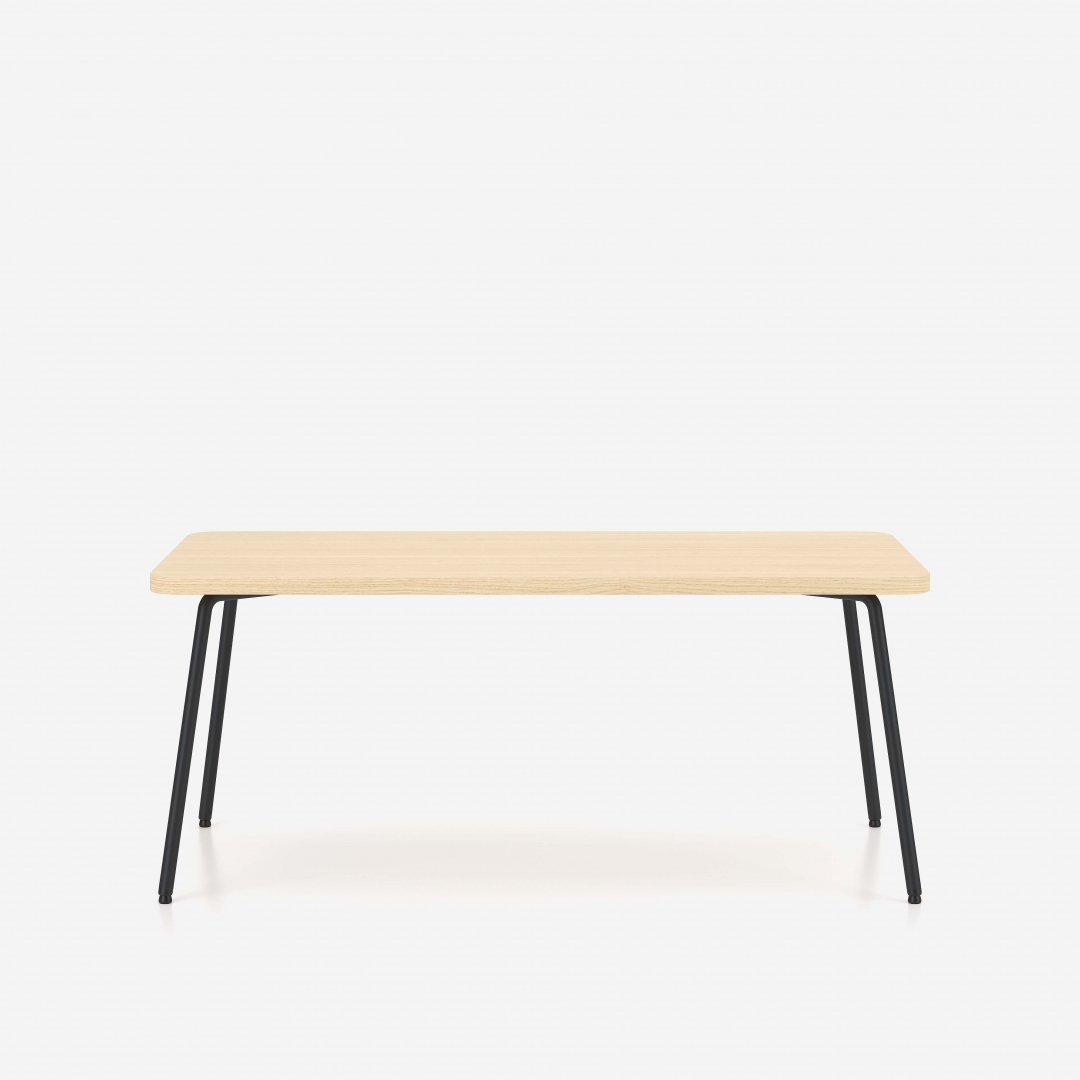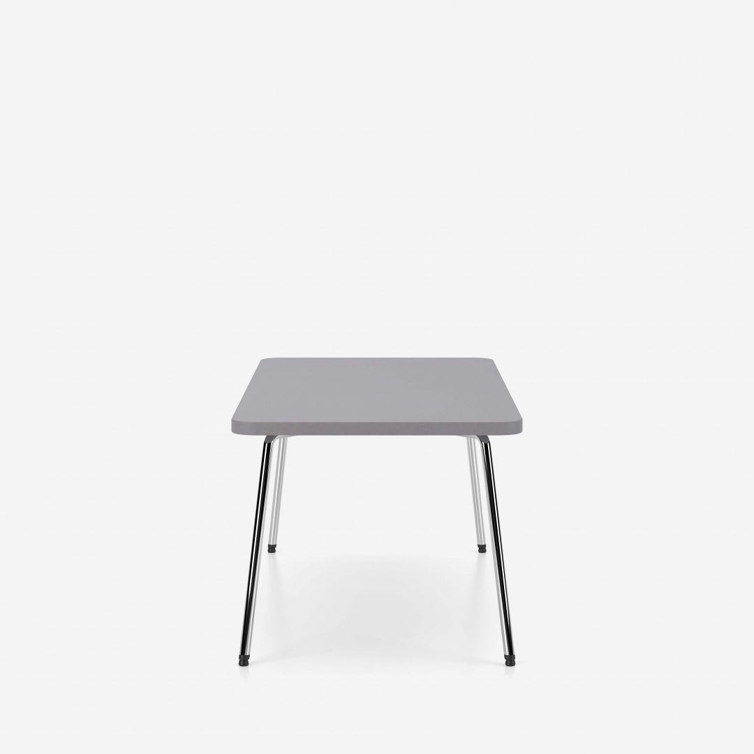 Die Tische der Linie Zone sind durch abgerundete Ecken gekennzeichnet, die an die Form der Armauflagen der Sessel und Sofas angelehnt sind.
