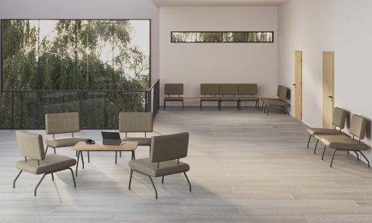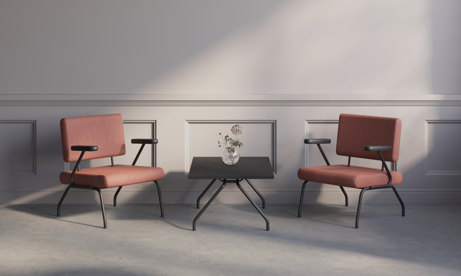 Der Tisch passt perfekt zu den Conect II Sesseln,