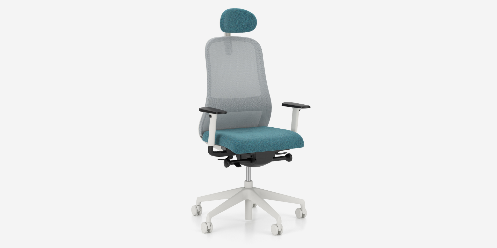 2-D armrests (R70) – armrest bar made of black glass fiber reinforced polyamide (PA + GF), structure made of black or light grey glass fiber reinforced polyamide (PA + GF), armrest pad made of black soft polyurethane (BPU). Adjustment range of the armrests: height 80 mm, side movement of the armrests 70 mm.