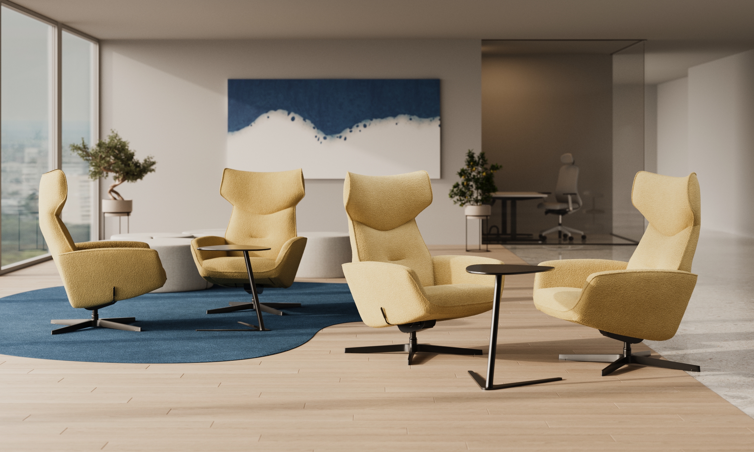 Il peut également être intégré avec succès dans des zones de détente telles que les salles d'attente, les bureaux privés ou les salles de repos, créant ainsi un espace propice à la régénération. Son design élégant lui permet également de s'adapter parfaitement aux intérieurs des salons modernes, en alliant l'esthétique et le confort.