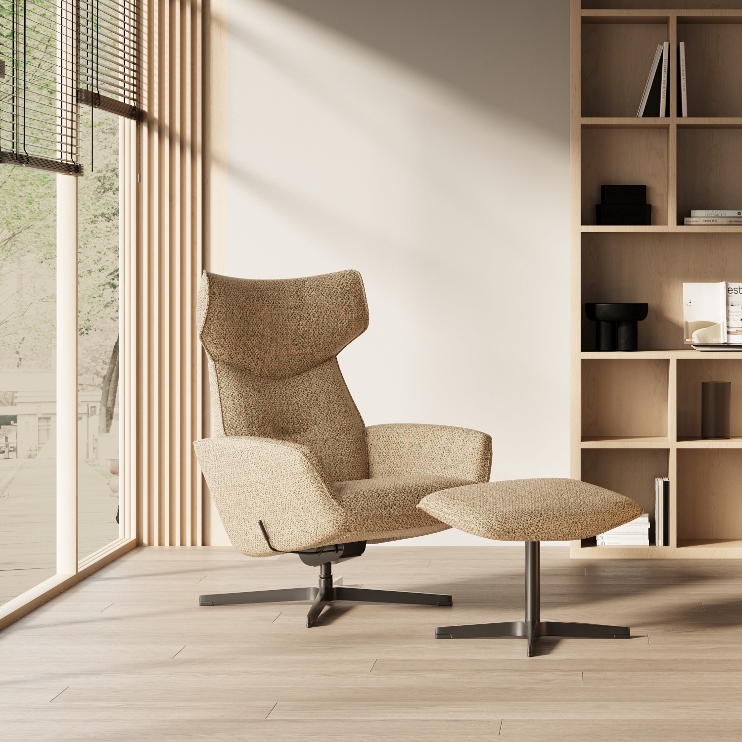 Le fauteuil Otuli avec repose-pieds pivotant est le choix parfait pour une variété d'espaces qui associent fonctionnalité et détente. Il est parfait pour les espaces de bureau, où il offrira un confort de travail tout en permettant un moment de repos grâce à la synchronisation du dossier et de l'assise.